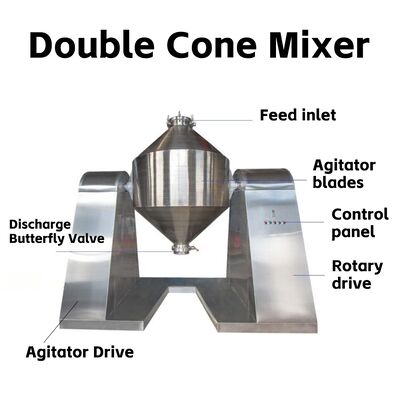 مخلوط کننده دو مخروط درجه حرفه ای با ساختار مخلوط کنونی کم باقی مانده برای مخلوط یکنواخت مواد پودری یا دانه ای در مواد شیمیایی، دارویی، پردازش مواد غذایی،مواد ساختمانی، و صنایع آفت کش.