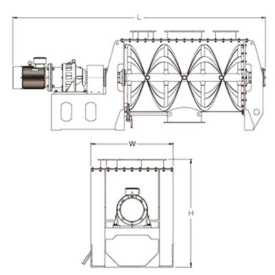میکسر روبانی پیچی که بر اساس مکانیک سیالات و اصول انتقال جامدات طراحی شده است، از یک موتور الکتریکی برای به حرکت درآوردن چرخش روبان استفاده می کند. این امر باعث ایجاد جریان های چرخشی پیچیده در داخل ظرف می شود و حرکت محوری، شعاعی و محیطی مرکب را برای مخلوط کردن یکنواخت مواد به دست می آورد.