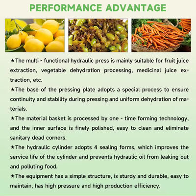 این تجهیزات پرس صنعتی در فرآیندهای کم آبی، استخراج آبمیوه و نمک زدایی برای کاربردهای مختلف فرآوری مواد غذایی از جمله محصولات لوبیا، سبزیجات ترشی، مواد دارویی و سبزیجات تخصص دارد. این سیستم همچنین جداسازی جامد و مایع را برای سایر مواد مقاوم در برابر اکستروژن انجام می دهد که عملکرد آن بر اساس ویژگی های مواد متفاوت است.